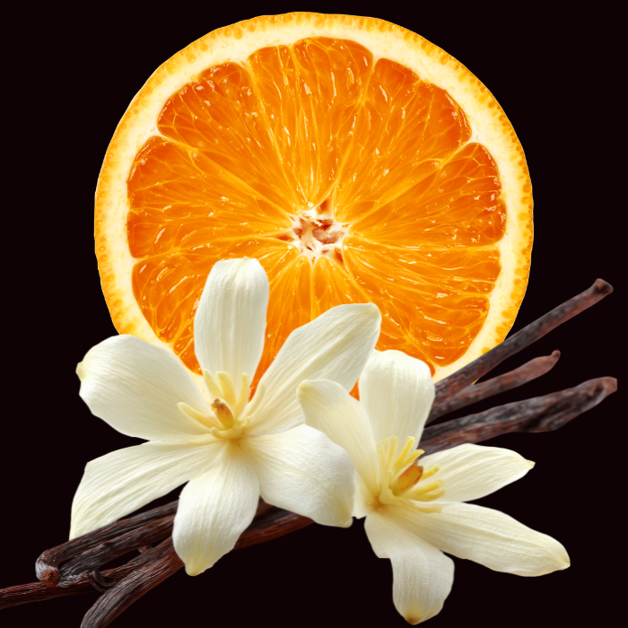 Orange peel offers a lively citrus lift and is naturally rich in antioxidant compounds, while vanilla contributes a soft sweetness and comforting depth. Together they harmonize the Coracao formula with gentle brightness and warmth.